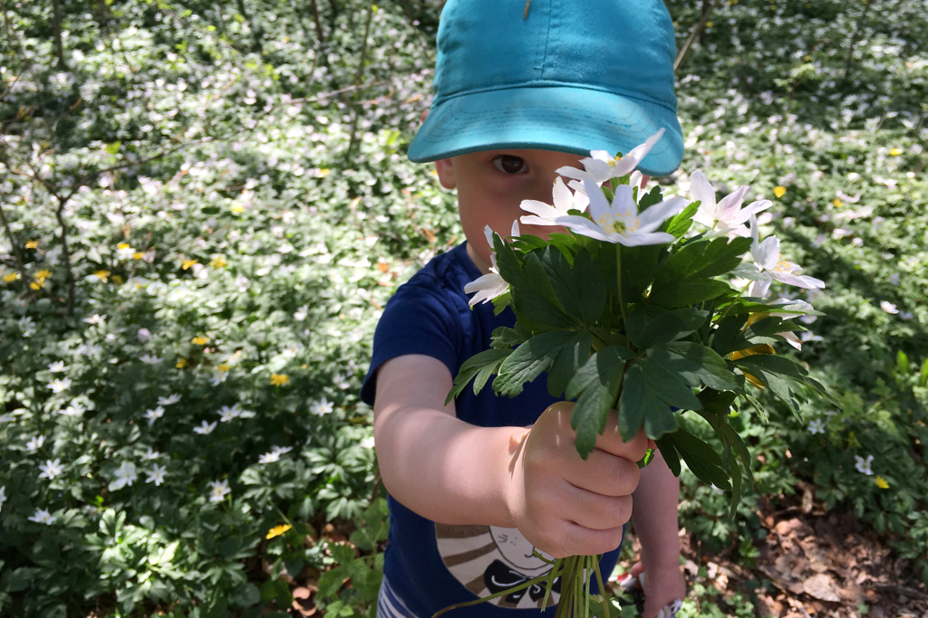 | Goaste lilla Aron och jag plockade så klart några vitsippor |